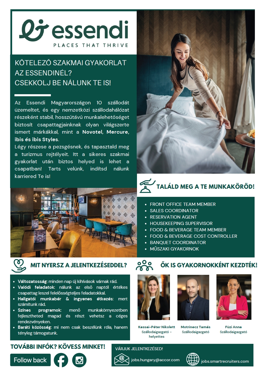 A jelentkezéseket fényképes önéletrajzzal az 📧 office@ekhotel.hu e-mail címre várják.