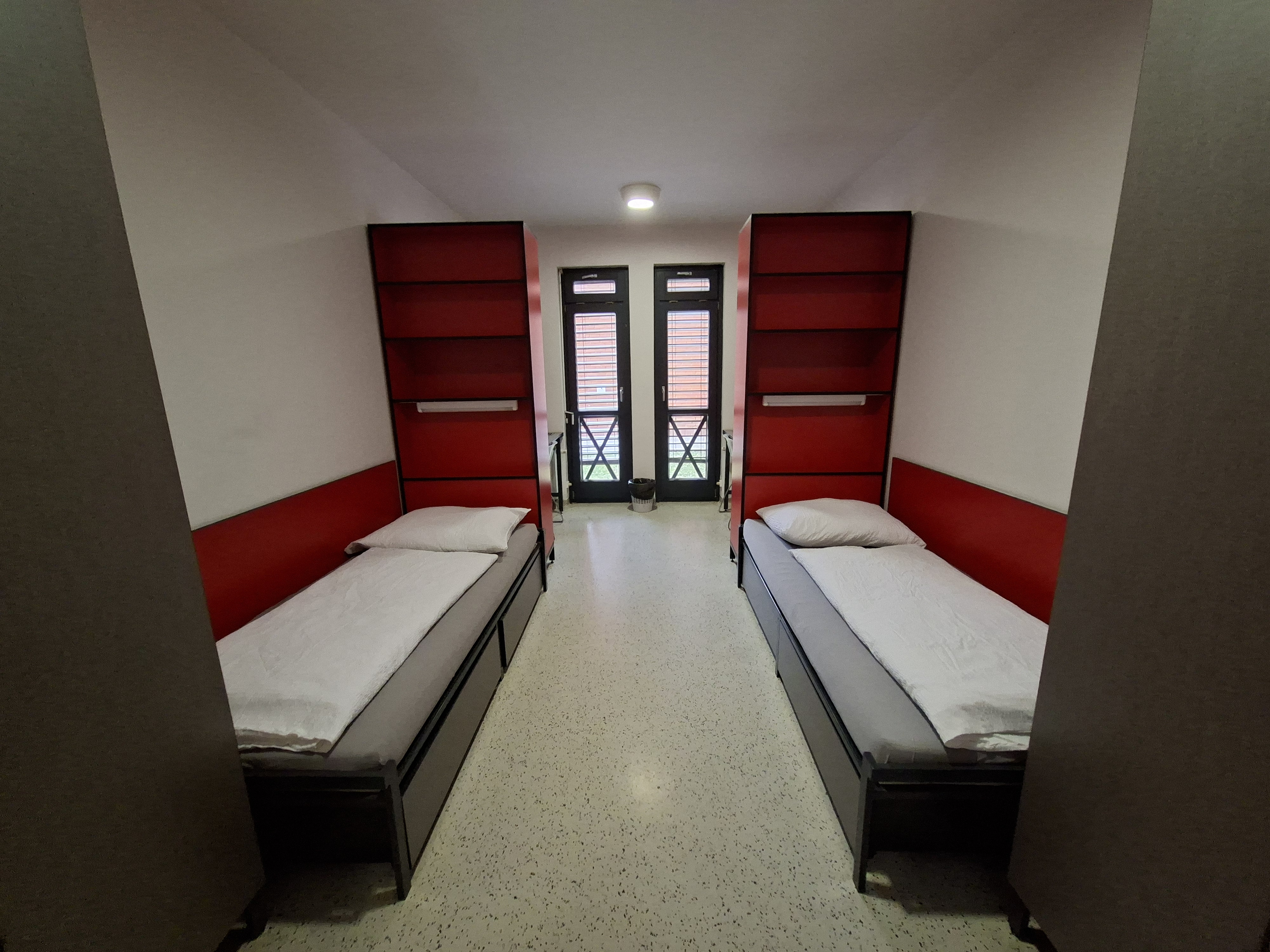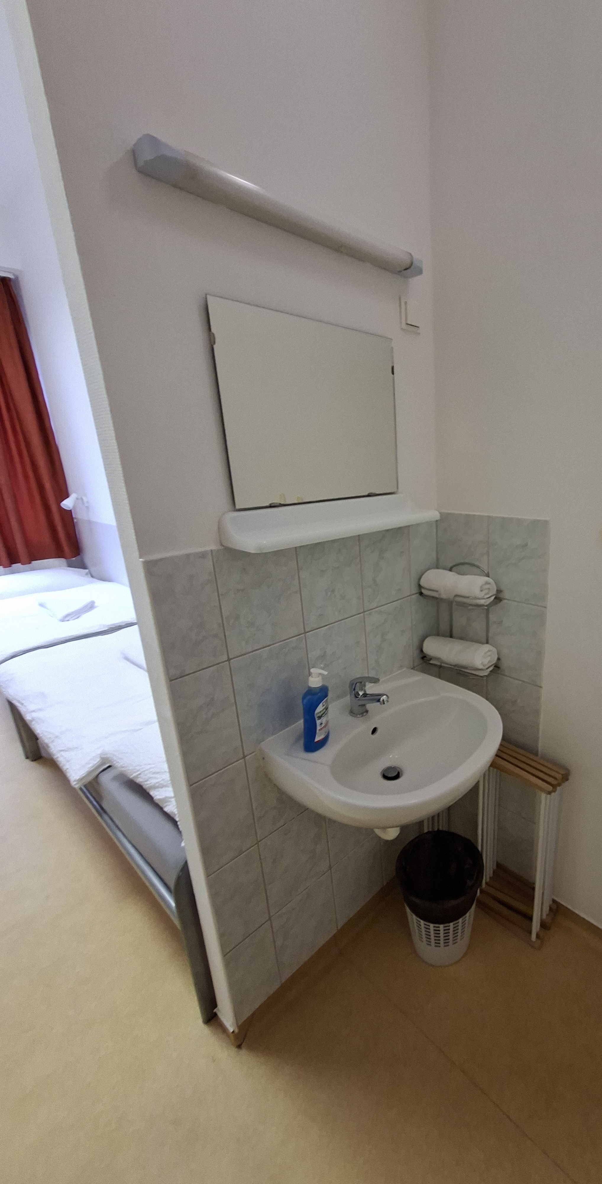 Mindegyik lakóegység kétágyas, hűtőszekrénnyel, mosdókagylóval, tükörrel felszerelt. Szin-tenként közös fürdőszoba és WC helyiség kapott helyet. Emeletenként egy-egy konyha-étkező is biztosított, elektromos tűzhellyel, mikrohullámú sütővel.